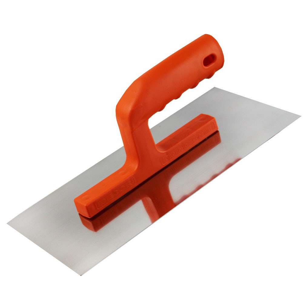 Гладилка из нержавеющей стали 0,7мм 280х130мм прямая DЕCOR 661-001 для нанесения и распределения клея для плитки, кафеля и керамогранита. Удобная ручка облегчает работу с раствором.