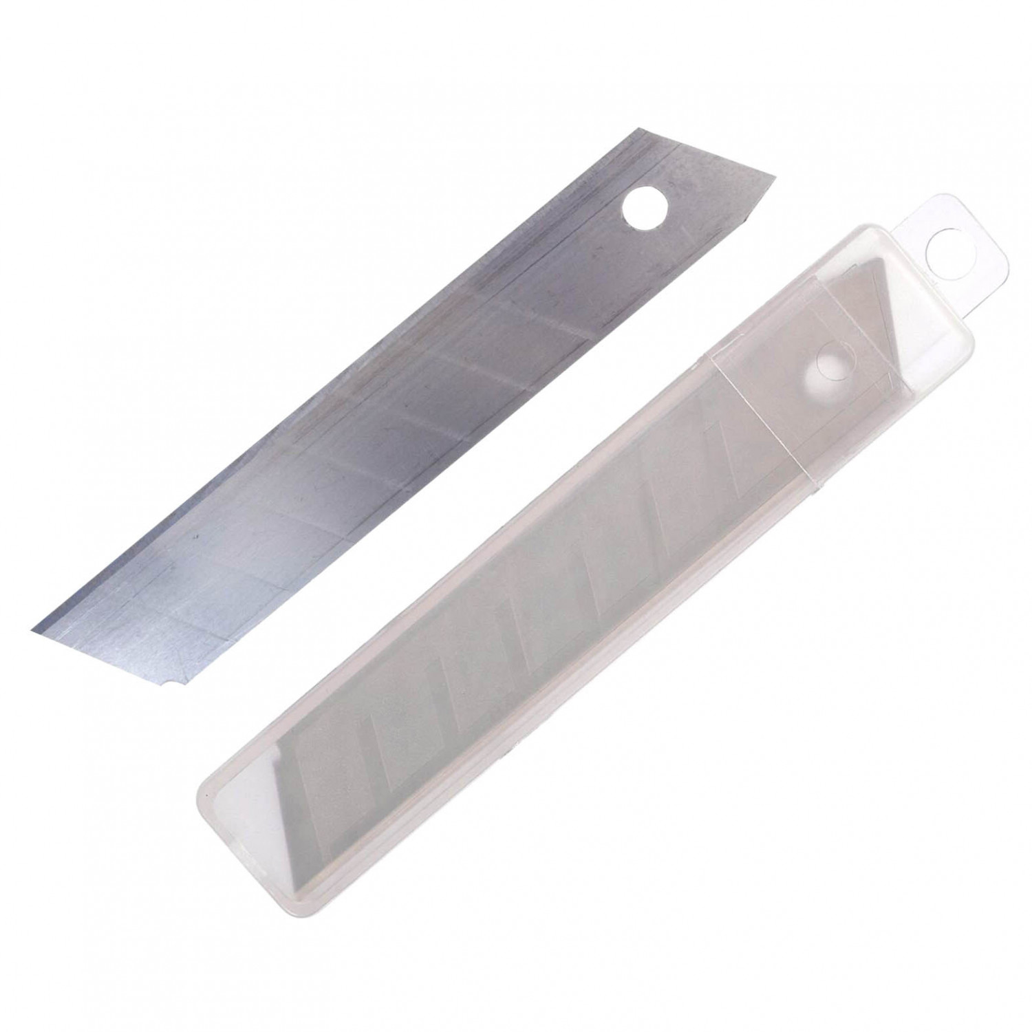 Лезвия для ножей сегментные 18мм 10шт. Предназначены для разрезания бумаги, картона, пленки, ткани, резины. Каждое лезвие имеет засечки для надлома затупившегося сегмента. Набор включает в себя 10 сегментированных лезвий для ножей в контейнере. Материал: высокоуглеродистая сталь CS. Сегментированная конструкция удобна тем, что в необходимый момент можно обломить затупившийся сегмент лезвия и продолжить работу новой режущей кромкой, что делает работу удобной и экономит время.