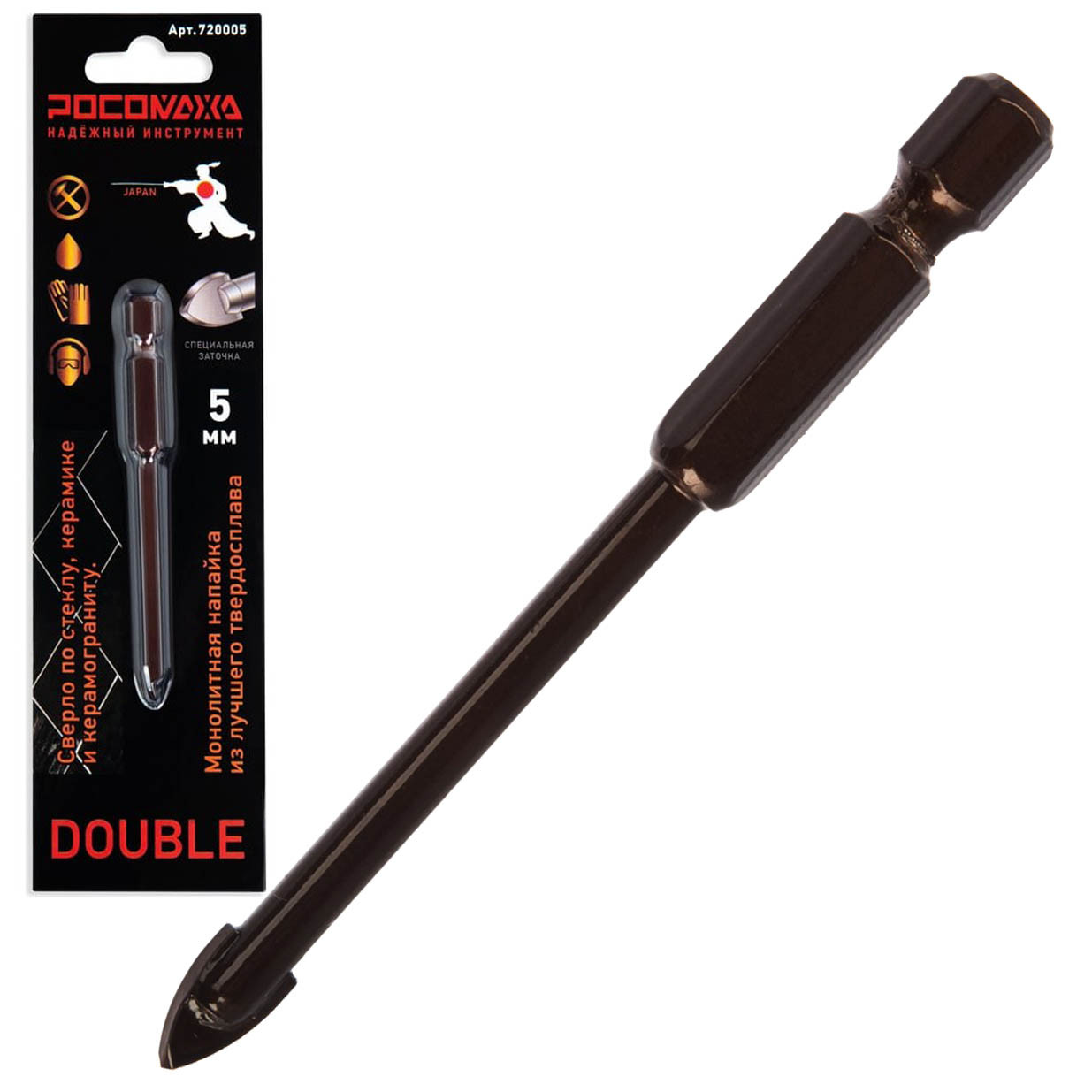 Сверло по керамограниту, керамике и стеклу, Росомаха, диаметр 5х75 мм, 2 грани, 720005 применяется для выполнения точных отверстий без риска повреждения материала.