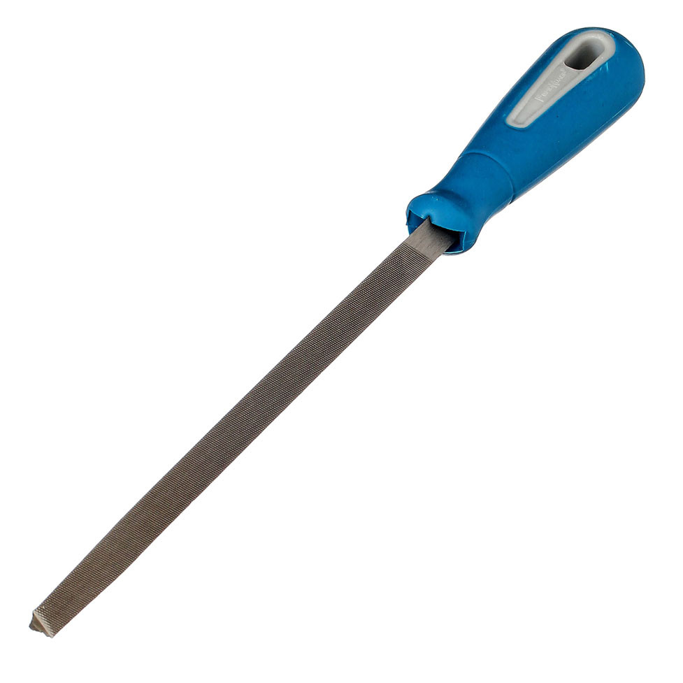 Напильник трехгранный пластмассовая рукоятка, №3, 200мм, (шт.) 40-1-113. Материал: углеродистая сталь У12, У13 с твердостью режущей части 60-65 HRc. Пластиковая рукоятка. Ручной инструмент для обработки металлов, дерева, пластмасс. Применяется для снятия фасок, грубой и чистовой обработки поверхностей, заточки режущих кромок, снятия заусенцев, окалины, ржавчины.