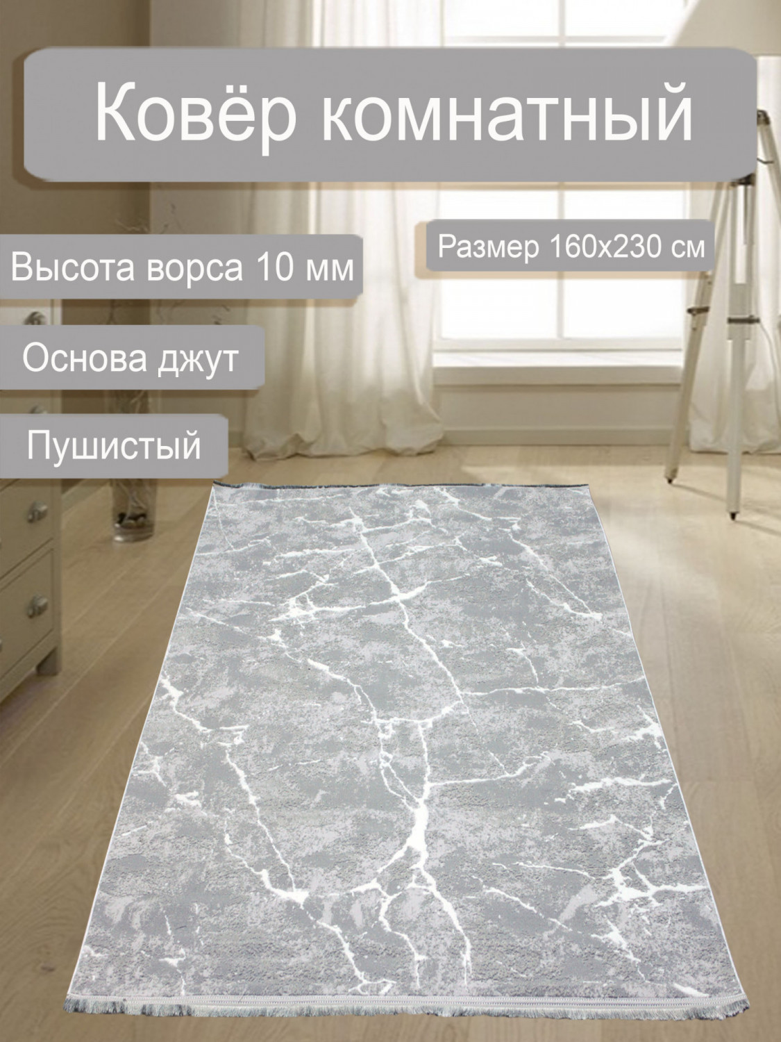 Ковёр АМАЛЬ 0910A GREY CREAM — это идеальное сочетание современного дизайна, вдохновлённого текстурой мрамора, и высокого качества турецкого производства. Ковёр выполнен в благородном сером цвете с изысканными светло-кремовыми акцентами, имитирующими текстуру мрамора. Такое сочетание создаёт гармоничный и спокойный образ, который легко впишется в любой интерьер. Светло-кремовые элементы добавляют света и тепла, делая пространство более уютным. Текстура создаёт иллюзию натурального камня, а переливающийся ворс добавляет глубину и динамику. Благодаря игре света, ковёр выглядит живым и объёмным, привлекая внимание своей уникальностью. Высота ворса составляет 10 мм, что обеспечивает мягкость и комфорт при ходьбе. При этом ковёр достаточно плотный, чтобы противостоять повседневному износу и сохранять свою форму.