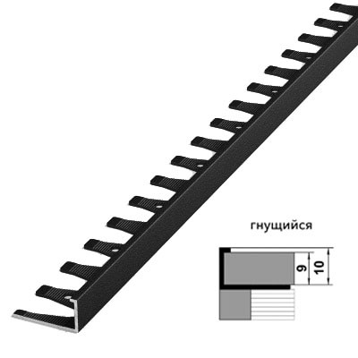 Г-образный профиль высотой 10 мм позволяет защитить наружные углы плиточных соединений от механических повреждений, торцы плитки - от сколов, а также выполняет декоративную функцию. Профиль ПК-02 - гнущийся, т.е может использоваться для соединения криволинейных участков.