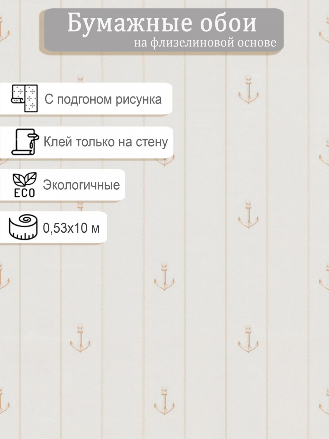 Обои МОФ Якорь в полосе 648602-1 на флизелиновой основе 0,53х10м