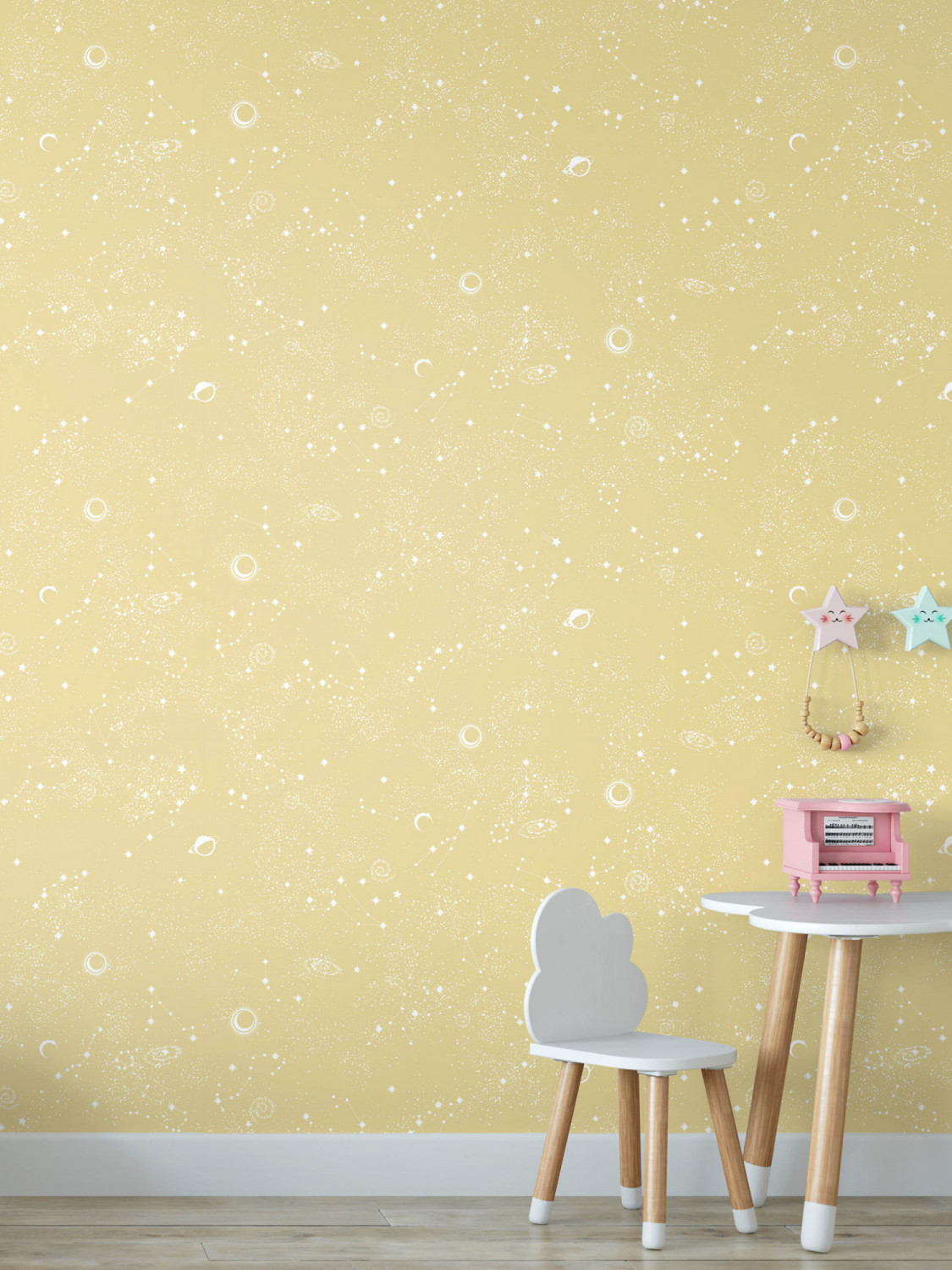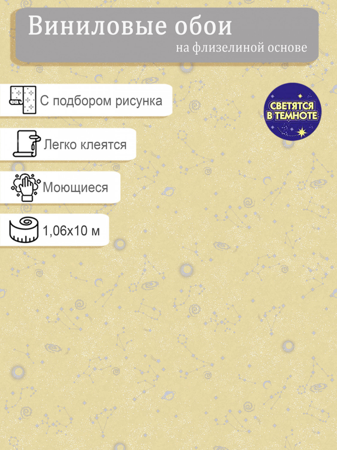 Созданная дизайнерами картина звездного неба в обоях Elysium Алиот E802300 пробуждает интерес к астрономии и развивает фантазию. Это отличный повод нарисовать вместе с детьми собственный атлас и любоваться ночным небом. Солнечный желтый цвет обоев поднимет настроение и разбудит утром. А вечером нежно-голубые созвездия будут излучать тихий свет.