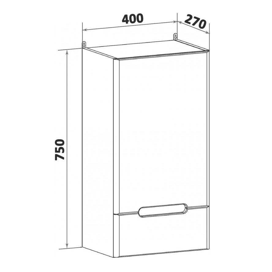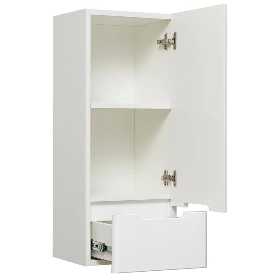 Шкаф навесной Runo правый Парма 40 с одной дверкой и нижним выдвижным ящиком. За дверкой - одна внутренняя полка. Петли со встроенным доводчиком, ящик на шариковых направляющих полного выдвижения.