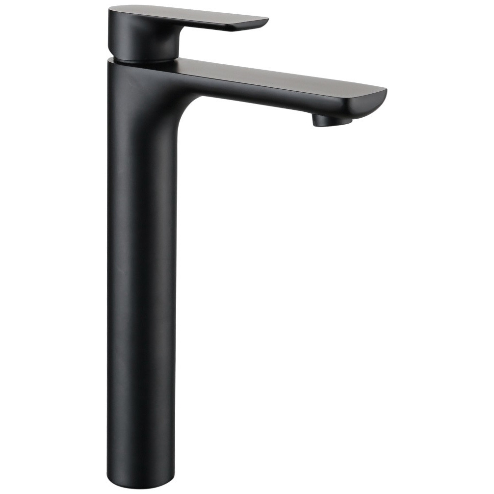 Смеситель для умывальника высокий AVRORA Moon AV3512 монолитный в матовом черном цвете.