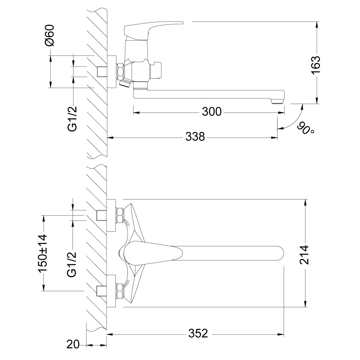 Тип смесителя или комплектующих: смеситель для ванны настенный