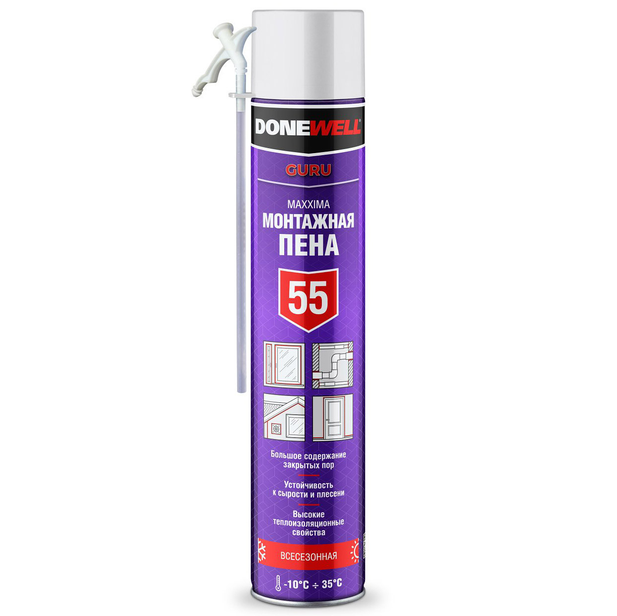 Высококачественная однокомпонентная полиуретановая монтажная пена обладает высокой адгезией к большинству строительных материалов, таких как: бетон, кирпич, штукатурка, дерево, пластик, за исключением полиэтилена, полипропилена и фторопласта. Обеспечивает равномерный, стабильный выход и идеальную мелкопористую структуру готовой пены. Применяется для установки оконных и дверных блоков, подоконников, крепления стеновых панелей, герметизации щелей, пустот, тепло- и шумоизоляции швов, а также для других строительных и отделочных работ. Благодаря повышенной гидрофобности поверхностного слоя и большого содержания закрытых пор, значительно снижает проникновение влажного воздуха через монтажный шов, тем самым сохраняет высокие теплоизоляционные показатели шва в различных климатических условиях, что сокращает эксплуатационные расходы по отоплению зданий.