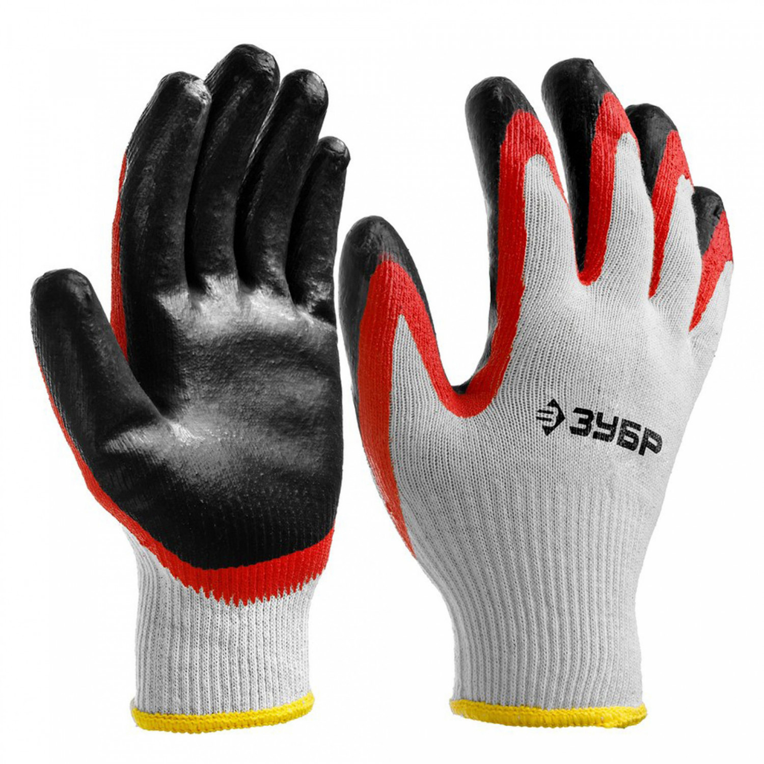 Перчатки с двойным латексным обливом ЗУБР х2 ЗАЩИТА эластичные натуральный хлопок размер L-XL 11459-K10.
